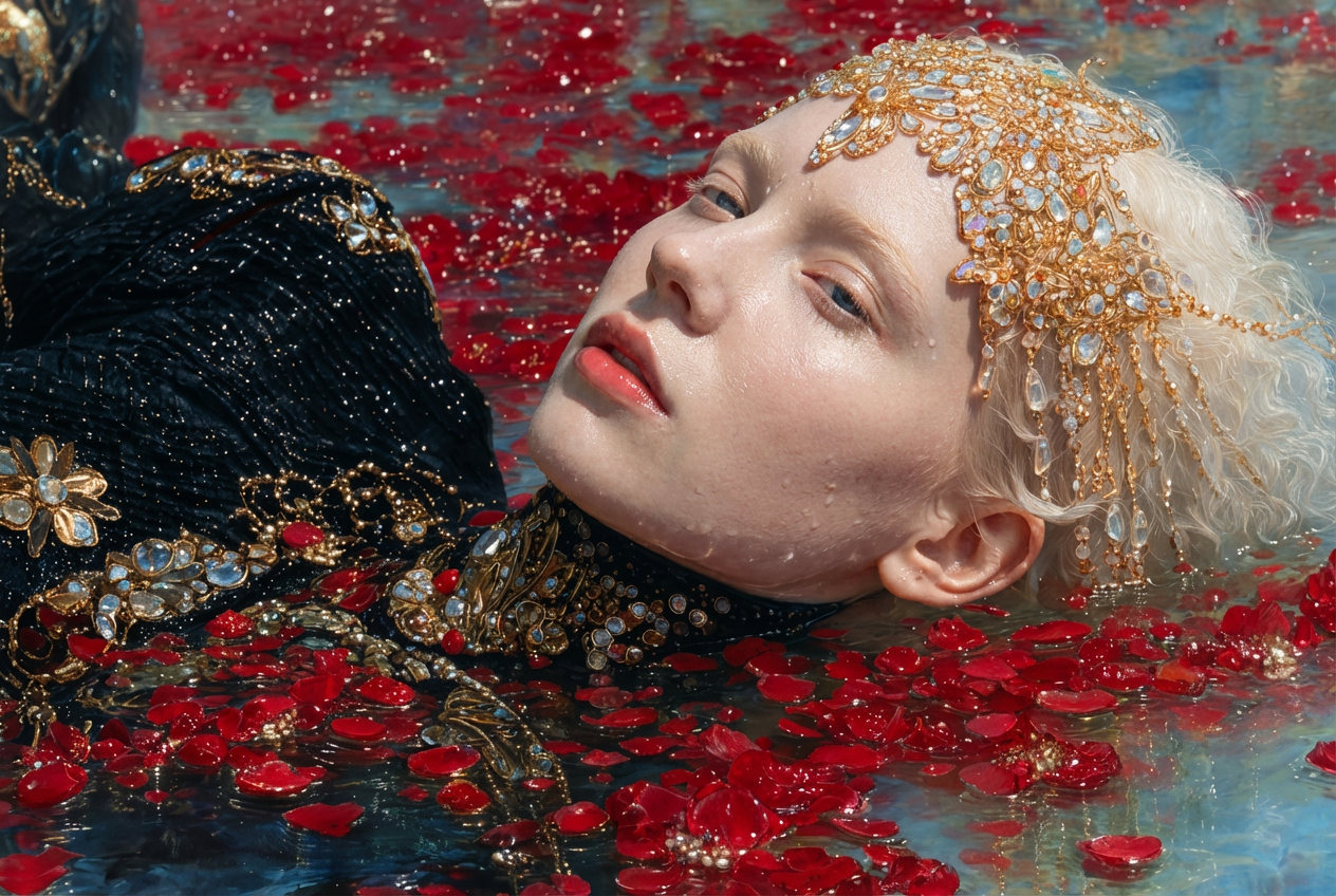Visually, this style sits on the frontier where realism bleeds into illustration. We use the workflow to "interrogate the surroundings," asking the machine to reveal not just the subject, but the silence and jewelry-laden decay that surrounds it.